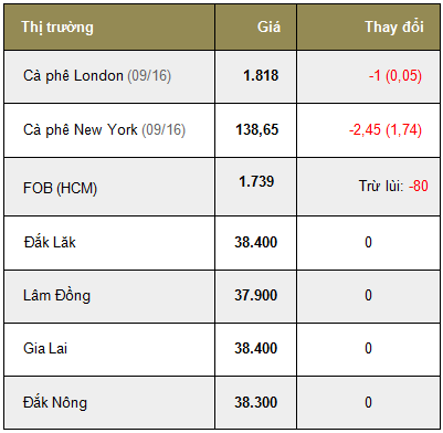 Giá cà phê trong nước ngày 11/08/2016 vẫn ở mức 37,9 - 38.4 triệu đồng/tấn