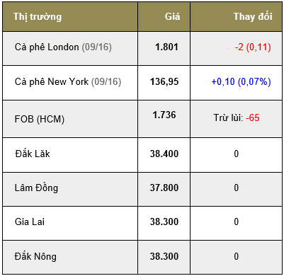 Giá cà phê trong nước ngày 16/08/2016 vẫn ở mức 37,8 - 38,4 triệu đồng/tấn