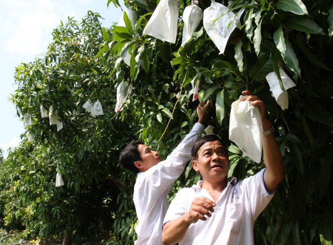 “Xoài keo có bao trái tôi mua 23.000 đồng/kg, nhưng nếu không bao trái chỉ có 13.000 đồng/kg. Ai nói xoài bao trái làm đổi màu và không dám ăn là nói bậy” - ông Dân nói.